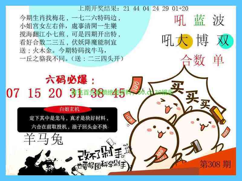 | 307期:⑧码 | 45.21.20.44.02.38.06.30 | 開:狗20 |